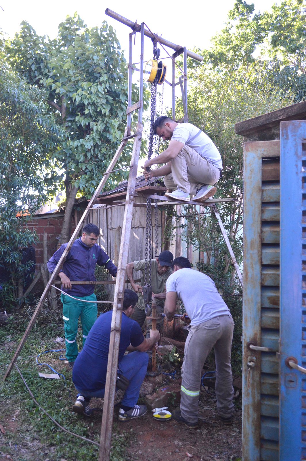 Por su parte, en el barrio Evita, se efectuó el reemplazo de una bomba sumergible de 1,5 HP, que había dejado de funcionar. La solicitud fue presentada por los propios vecinos, quienes aportaron el nuevo equipo y solicitaron el apoyo técnico municipal para su instalación. El trabajo implicó la extracción de la bomba averiada a 40 metros de profundidad y la adecuación del tablero eléctrico. Gracias a esta intervención, se logró restablecer el servicio de agua potable para más de 60 familias.
